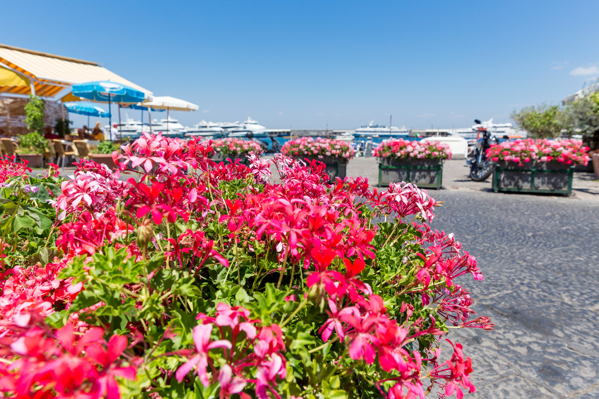 この季節の主役は、なんといっても海!海水温も25℃前後まで上がり、海水浴には最高のコンディションです。島の南側にあるマリーナ・ピッコラのビーチでのんびりしたり、ファッショナブルなビーチクラブでカクテル片手に過ごしたりと、思い思いのバカンスを楽しめます。
